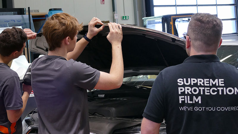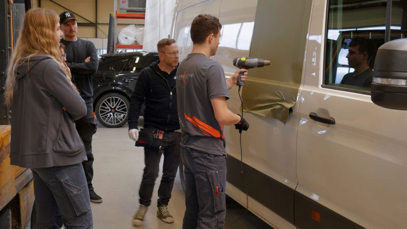 Als erfahrenes Unternehmen setzen wir auf regelmäßige Weiterentwicklung. Deshalb haben wir im November Avery-Dennison-Experte Stephan Epp zu einer intensiven Schulung direkt zu uns ins Haus geholt. Sein tiefes Know-how in Folierung und Lackschutz war in jeder Minute spürbar und die Inhalte waren klar auf die ausgerichtet, die ihre Technik weiter verfeinern wollen.